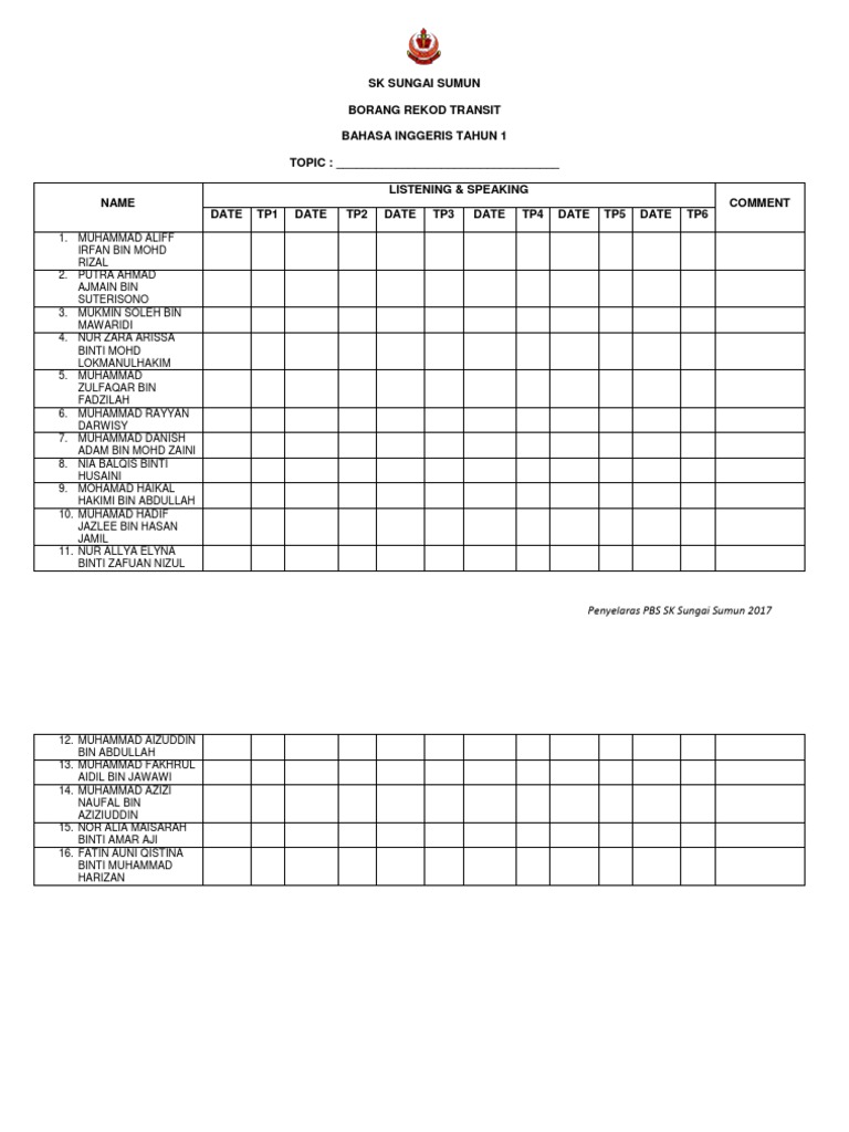 Pihak SMK SYED SIRAJUDDIN tidak bertanggunjawab terhadap sebarang kehilangan dan kerosakan yang. Borang Transit PBS Offline Tingkatan 2. Ini merupakan contoh borang pentaksiran Pendidikan Jasmani Tahun 1.