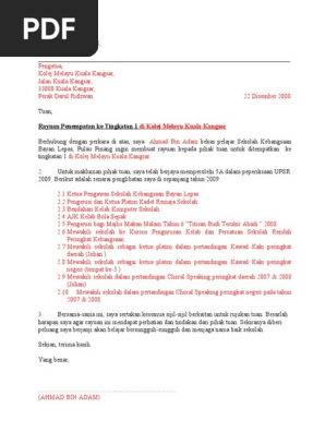 Surat Rayuan Memohon Bersekolah Semula Pdf